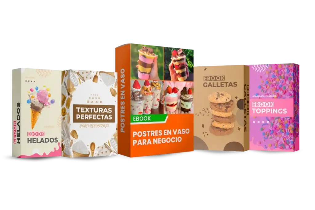 Puedes imprimir en cualquier impresora y los ingredientes son fáciles de conseguir, además dentro te entregamos 4 cursos de postres adicionales.